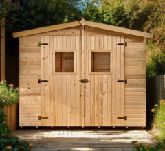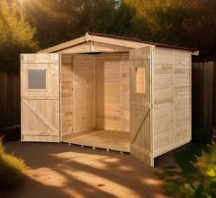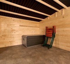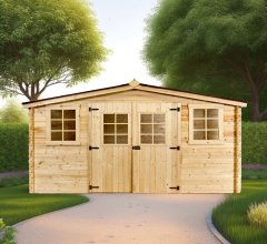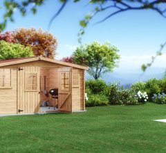 L’abri BA4040.02N est un abri en madriers massifs de 28 mm avec une grande largeur de façade de 4 mètres. Il est livré avec un toit en plaques ondulées pour une plus grande longévité, une porte double grande largeur de 1.60 mètres avec une fenêtre intégrée et 2 fenêtres supplémentaires. Il offre une belle façade...