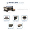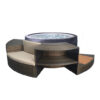 Pourquoi ne pas opter pour du mobilier sur mesure disponible en option. Une armoire pour cacher l’arrière scène ou le bloc moteur, une étagère pour les serviettes, une marche d’accès et un banc avec coussins pour prolonger votre moment de détente en dehors du spa.